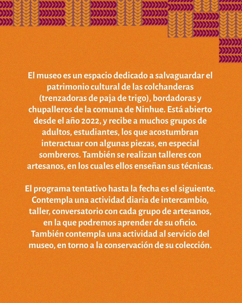 Junto al Museo Vivo Artenin @museoartenin, te invitamos a participar de una jornada de 4 días en la región de Ñuble, en la localidad de Ninhue, ubicada a 45 kms. al poniente de Chillán.
