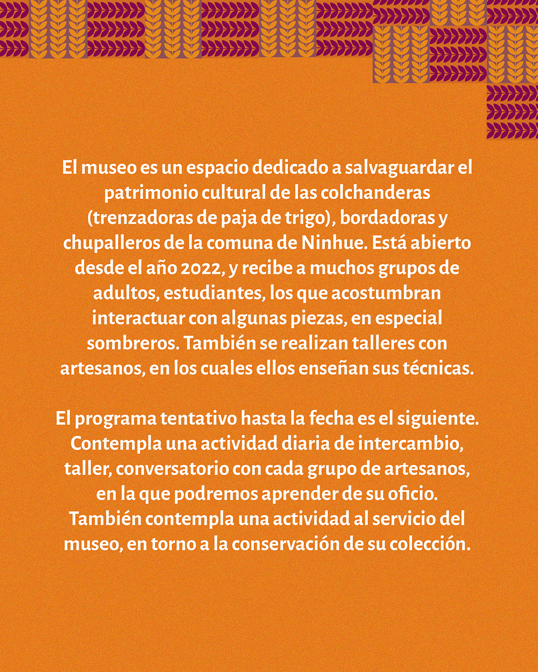 Junto al Museo Vivo Artenin @museoartenin, te invitamos a participar de una jornada de 4 días en la región de Ñuble, en la localidad de Ninhue, ubicada a 45 kms. al poniente de Chillán.